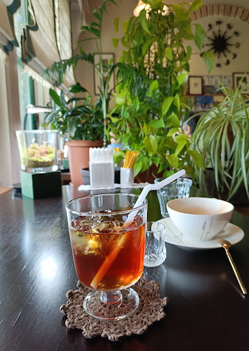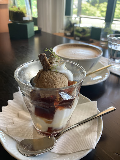 Read moreセイロンアイスティーと紅茶パフェ(スモール)を頼みました。 丁度窓側の席が空いており、見晴らしや日の光が心地よくリラックスできました。 窓側の席は2つあるのですが、きちんとグリーンで仕切られていて、素敵な空間作りで過ごしやすかったです。 紅茶パフェ(スモール)は紅茶アイスと横に添えてある紅茶クッキー(?)の濃厚な味と、スッキリとした紅茶ゼリーと生クリームの相性がとても良くて、甘すぎず最後まで美味しくいただけました。 アイスセイロンティーも味が濃くて、ミルクティー(ホット)を頼んだ家族は普段紅茶を飲まないのですが、紅茶の濃さと苦味が違う、美...
