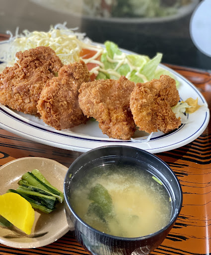 小諸市内で二店に入れず、仕方なく御代田方面に移動。 Googleで調べて不安ながらこの店に決定。 入り口で店員さんを待っていたが、全く気配が無いので勝手に座る。 数分経っても店員は来ないし、エアコンも効いてなく暑いので、他の店に移動しようと思っていたところに店員さんがお冷とおしぼりを持ってこられ、仕方なく注文することに。 奥さんはロースカツ定食、私はハズレが少ないだろうとカツカレー。 出されたおしぼりは油臭く、手を拭いた後に手が油臭くなってしまったのでトイレへ行き改めて手を洗いました。 スプーンは汚れが落ち切っておらず、交換してもらいました。 もう、ここまでの流れで覚悟を決めていました。 しかし、その後は期待を裏切られました。 カツは柔らかく、カレーも欧風カレーでとても美味かった! ロースカツも柔らかくて脂も美味しく、良い豚を使っている印象です。 料理はコスパ良かったのですが、他が良くなかっ...