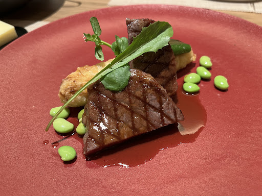 何品目かの料理で、お皿に一口大の物が4つとキッシュが乗っているのですが、それぞれに2つ以上の食材がくっつけてあったり混ぜてあったりして┄(説明が難しい💦) 1皿だけで何十種類もの食材が楽しめる様な料理で、絶対に家ではできないもののオンパレードでした❗️
