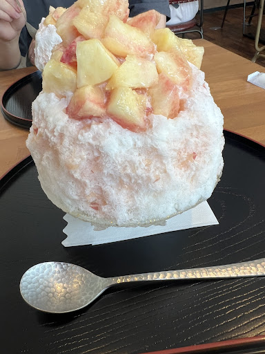 30分待ってようやく席へ(水はセルフ) 今回は桃といちごをオーダー(壁のボードには各月のメニューが記載されてます) 5分ほどできました。 ほんのり甘いフワフワの氷に果物がゴロゴロ載ったなんとも贅沢で美味しいかき氷です。素材も本当に美味しかった。 食べてからしばらく話しているとウェイティングもありやんわりと退席を促されますが席数が少ないので仕方ないですね。 暑い中お客さんを待たせないようにという配慮のできたお店だなと思いま...