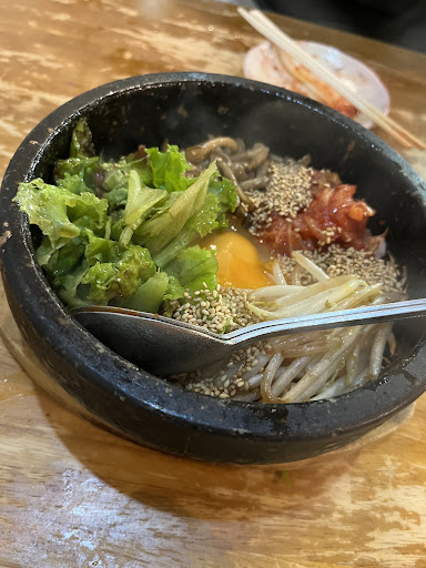 前々から気になってたので、ようやく訪れることができました。 参鶏湯を食べたことないので注文。 また、チヂミ、サムギョプサル、石焼ビビンバを注文しました。 参鶏湯は、熱々の器で到着。中に入ってる鶏肉がホロホロで骨まで食べれます。 味付けも濃すぎず薄すぎず食べやすいとこも嬉しい。 サムギョプサルも1人前で来て、肉も食べやすく切られてるのもありがたかった。 サンチュも大きく食べ応えあり。 チヂミは、モチモチサクサクで家では作れない一品。 ビビンバも熱々で具材もたくさん入ってて かなり美味しかったです。 料理を作るところから提供するまでお母さん一人で切り盛りされてます。 その手際の良さは、見てて素晴らしいなと思いました。 テーブルの水が少なくなったら追加で入れてくださるし...