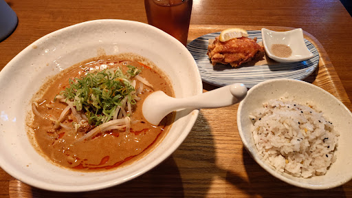 ラーメンはようは担々麺?になるのかな、分からないけれど美味しかった。 擦ったゴマがよく効いていて香りが良い。 麺もスープがよく絡み美味しい。