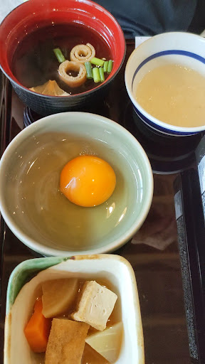 いちょうの湯を訪問して併設レストランのここへ。。。事前にホームページでチェックしたメニューは変更してもうありませんと言われちょっと残念。ホームページの更新遅いです。2ヶ月経ってもそのままでした。 しゃぶ禅系レストランみたいで牛系和メニューがメイン。お手頃お値段設定はそばやうどん。御膳や定食のお値段設定は普通のスーパー銭湯よりちょっと高い。 まぁ最近は宗像のやまつばさもメニュー値上げしたしこんなものかなのかなぁ。 タッチパネル式発券機で食券機を先買いするシステム。側でスタッフさんがスグに券を受け取って注文です。スタッフさんも親切で感じ良かったです。 同行した家族は最近食べたかったというバラ肉すき焼き御膳1380円を注文。私は初めてでお試しも兼ねて天丼1000円を注文。おダシの味付けは濃いめに感じました。最近自宅では薄味にしてるからそう感じるのかもしれない。濃い味我慢してるよね~でもオイシイよね〜みたいな。 すき焼きは肉が敷き詰めてあって見ためかなり豪華で思わずオドロキの叫び声を発してしまいました。コンロに乗ってきてお肉の色が変わったらいただいて良いですと言われました。なんか卓上クッキング系料理ってテンションアガル。私も少しいただきましたが味は美味しい、でもスジ肉が硬い部分がありました。すき焼き食後、うどん玉入れたいね。と家ではいつもすき焼きのシメはうどん玉だったので一人でテンション上がり続けてました。楽しくて動画も撮っちゃいました。 天丼は衣サクサク エビ天も3匹入っていて普通にオイシイ。タレがかかってもシンナリなっていないのが良かった。油も新鮮なやつ使ってました。 食後...