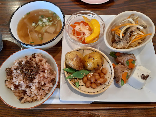 写真のメニューの他にドリンクが選べて、梅と豆乳の酵素ジュースをオーダーしました。とてもあっさりしていて飲みやすかったです。
