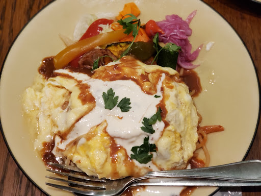 Read more22/5/4 キャンプ場に向かう途中で息子がネット検索でみつけたお店。3卓とカウンターの小さなお店だが、感じがいい。 Bランチでナポリタンを注文(1500円)。前菜の野菜は新鮮でシャキシャキ、ナポリタンは上にオムレツとデミグラスソースがかかっていて、下のパスタはもちもちの生麺(と思う)にケチャップソースがよく絡んでいて、ナポリタンらしさがしっかり出ている。食後はコーヒーとガトーショコラのケー...
