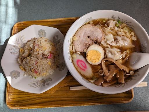 Read more2023/10/14 以前から行ってみたいお店でした。11:40到着で既に待ち人あり。ネットで調べても情報が少なく開店時間も11:30と言う情報があったので、開店時間目掛けて行った割には待つと言う。帰り際に確認したら111時開店。現在はお昼しか営業してなく13:30までだそうです。ご夫婦2人での厨房、フロアのワンオペゆえ、着席、着丼までは少々時間がかかります。次から次へと来客があり、1人で片付けているのを見ると思わず手伝いたくなります。大通りに面してるでもなく、幹線道路に面してるでもないのにあれだけ来客があるのは、ひとえに安くて美味しいからだと思います。お会計の際、またお願いしますとのお声を頂きましたが、奥様のワンオペを見るのは辛いかな?と思ってしまいます。ワンタン麺もチャーハンも美味しかったです。次はエビラー...