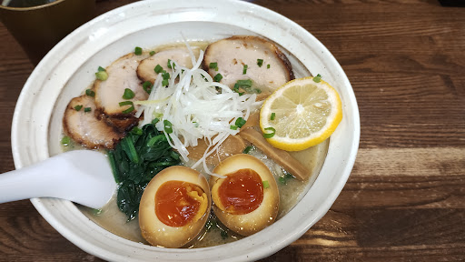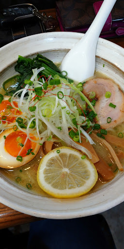 Read more友達から紹介されて行ってみました。『鶏白湯ラーメン大葉』さん…店舗は小さめ、小上がりに4人用のテーブルが2つとカウンター席が6つ。男性一人が厨房、女性がお一人で注文をとっておられました。友人に勧められていた、塩鶏白湯麺+全部のせを注文。(ちなみにメニューはすべて醤油と味噌味でも対応) 店内のテレビで今年一番の冷え込みとお天気ニュースを見ている間に着丼。ホロホロのチャーシュー、メンマ、青菜、玉ねぎ、白髪ねぎ、味玉、しっかりと鶏の味がするスープに細めの透き通る様な麺がマッチしており、輪切りになったレモンがアクセント、絞るとよりスッキリと召し上がれます。一緒に行った連れは、味が少し濃い目かな~と言っておりましたが、私はラーメン注文時に無料になる半ライスを麺を食した後に丼に投下、最後の一滴までスープを堪能してまいりました。味変用に柚子胡椒、ニンニクがおいてありますので、自分好みにすることも可。他の方も書いていますが駐車場が小さいのでどんなに頑張っても5〜6台がリミット、人数だけお店にお伝えして車での待機されておられる方も…人気店ですのでタイミング良く入ら...
