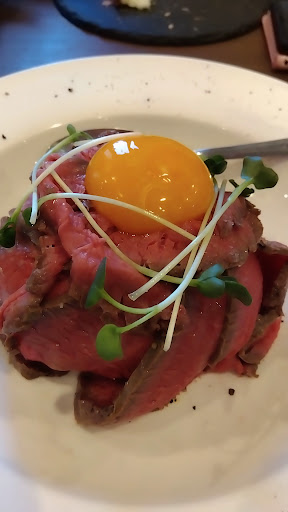 ローストビーフ丼セット。 グレービソースか わさび醤油と選べる。私は前者。 サラダ、スープ、ドリンク、ミニデザート付き。 何もかもが手作りというコンセプトらしい。 香味野菜とオマールエビの冷製スープ。うーん美味い。 サラダ。うーん冷えていて野菜も小さく食べやすい。ドレッシングもいいアクセント。 ブドウジュース。うーんさっぱりして飲みやすくて美味し。 ローストビーフ丼。うーんお肉柔らか臭みもなくしっとり優しい味付け。 ピンクの塩がとっても美味しくてたくさんかけてしまった。 アイス。ピーナッツ?って言ったかな?美味し。 お店のコロナ感染予防もしっかりしており 開店2年で綺麗な店内。 奥にはお座敷もあり。 開店11時オープンであっという間に 4組のお客様。 ...