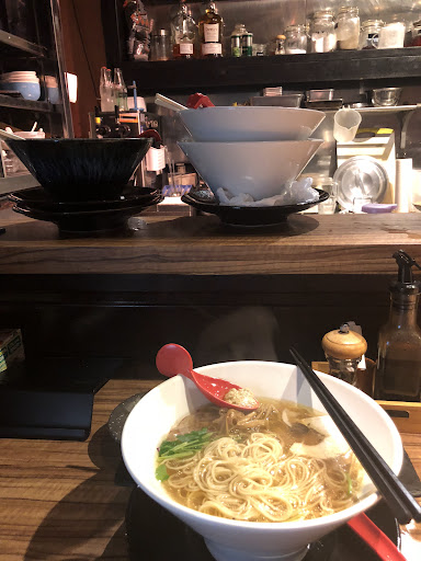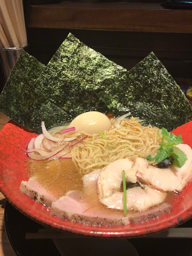 出張で初めて茂原市へ来た夜、居酒屋で呑んだ帰りの〆として21時頃に訪問。出入口横にある券売機で、好きな味噌ラーメンのボタンを探したが無かった為、せっかく茂原市まで来たんだしどうせならと一杯1000円超え😳の蛤出汁・特製中華そばをチョイス。 メニューに餃子(ニンニク無し)はあるものの炒飯は無く、どうやら一般的な町中華ではない、無化調が売りのラーメン屋のようだ。店内の雰囲気も少しBARっぽいし。 店員は店長さん?とアルバイト?の女の子の2人で、他に誰も客は居なかったにも関わらず提供時間は遅め。カウンター席からだと見えないが、何やら色々とやっている御様子。 出てきたラーメンはやや小ぶりな丼に、海苔や細切りメンマ、鶏と豚のチャーシュー等、様々な具材が綺麗に並べられたお洒落系なやつだった。 中でも初見だったのが、赤いレンゲに入っていた松茸ペーストなるもの。店員さんに訊くと「お好みでスープに溶いてみてください」とのことで、せっかくだし全量一気に溶いてから一口飲んでみる。んー😔松茸と蛤の風味がぶつかりあって、個人的には微妙かな・・・。最初から全部溶かなきゃよかった💦 細切りメンマの食感はGood👍だったものの、細麺の味は正直好みではなかった。見た目がクリーミィな鶏豚出汁ラーメンもしくは牡蠣ラーメン等、他のラーメン...