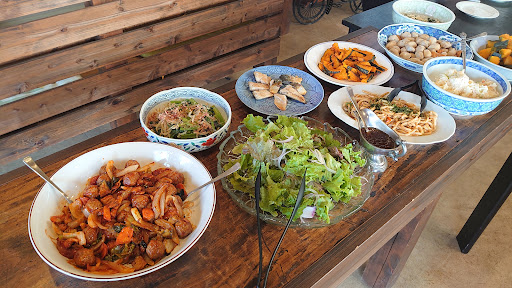 たまたま、ピークタイム後だったためかお客さんは私だけ。 ママさんが、料理を追加準備してくれました。 かなりの品数、家庭料理。 メニューはバイキングランチのみ。 最後にカレーまで出てきました。びっくり。