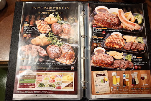 ハンバーグが食べたかったのでビッグボーイか爆弾ハンバーグで迷いましたが、結果的にこちらを選んだ理由はサラダが食べ放題だったという事です。 実は前回こちらに食べに来たのは6年前でした。 記憶は曖昧ですが、リピートしなかった理由は何かあったと思います。 今回は一緒にいた娘が生野菜を沢山食べたいということでお邪魔しましたが、結果から申しますと、ハンバーグ自体は何ら遜色なく美味しく戴けました。 爆弾ハンバーグのようにまん丸のハンバーグをお客さんの前で半分に割り、提供するスタイルです。 スープが二種類、サラダバーも色んなものが楽しめ、杏仁豆腐やゼリーなども食べ放題でしたのでお値段以上に楽しめると思います。 期待しなかった分、それなり...