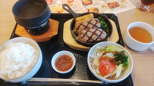 Read more朝7時からの営業ありがとうございます。ブレックファーストの選択肢が多くなり、ありがたいかぎりです。ということで、まだ朝から、大俵ハンバーグを食べてしまいました。ソースがデミグラスとタマネギしか選べないのが不満(朝からガーリック希望)だけど、サイズに合わせた皿も新たに用意されたのかな、美味しかったです。確か、すべてのモーニングメニューに、スープバー(その日はコーンクリームスープとビーフコンソメスープの2種類)、ドリンクバー込みなのもありがたい。長居出来ちゃいます。今までは、その先の、なか卯で朝食でしたが、選択のバリエーションが増えて、本当にうれしいで...