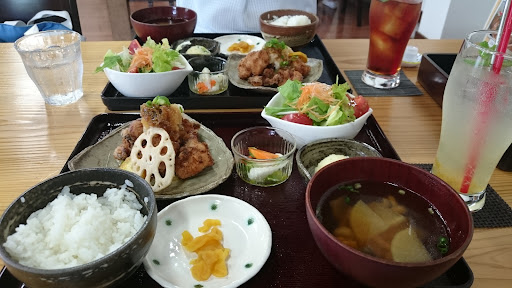 席間が広々、ゆったりとしたカフェで、料理・デザートとも美味しいです。 駐車は敷地内に他車への支障がないように停める感じです。工場を改装したお店とのことで、空間が広々としています。そのためコロナ感染リスクは少なそうです。店内には観賞用植物が多めにディスプレイされている印象です。 ランチメニューの特製ネギだれ鶏唐揚げをケーキドリンクセットで頂きました。唐揚げはジューシーで美味しかったです。ケーキはガトーショコラを選択、ケーキだけではなくフルーツとアイスクリームもあり、ドリンクセットから実質+300円で非常にお得感があります。ガトーショコラなどデザートも美味しかったです。 ただ、気になった点もあります。ゴールデンウィーク初日に伺い店員さんが忙しかったためか、メニュー聞きにテーブルに来てメニューを即決め出来ないと察すると、何も言わずどこかへ行ってしまいました。何か一言断ってから行ってほしいです。またメニューについて、プレートランチはドリンク付きですが、ケーキドリンクセットのケーキを付けたい場合の記載はありません。店員さんに聞くと+400円で付けられるとのことでしたが、分かりにくいのでメニューに明記してほしいです。さらに、入店時の体温測定機の感度があまり良くないので、感知するまで何度も何度も顔を測定機に映すよう店員さんに促されることも地味にストレスでした。そのため、とても良いお店ではありますが、評...