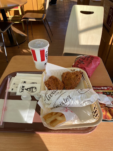 Read more久しぶりの久しぶりにKFCに行った KFCってこんなに不味かったっけ? チキンのジューシーさは無く痩せて感じたしコロモとチキンは合ってないしなんか昔はもっと美味しかったと思ったがこれ私だけ? 対応はまるでロボットのようなマニアル対応で久しぶりに行ったので内容に迷っていても聞いても・・・だった それに店内で食べるんだから買ったセットに飲み物が付いてないなら教えてくれよー! 人手だ...
