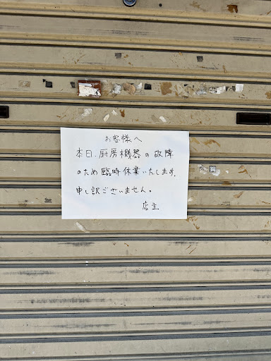 近くのうどん店で昼食しようと訪問したのですが「厨房機器の故障のため臨時休業いたします。」との貼り紙が…