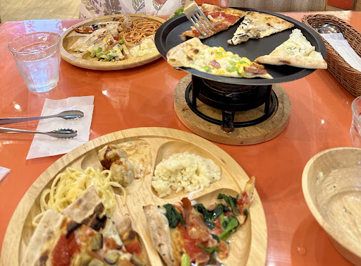 Read more11時に席の案内優先の予約を入れて来店。 とりあえず整理券をとらなければなりません。 この日はTVの影響で待っている人が多かった為案内が進まず文句を言う人がいました。とにかく席に早めに案内してくれたら良かったのかと思いました。それでも席数は多いので少し待ったものの比較的早く座れました。 良かった点はピザを席で温められること。しばらくおいておくとサクッとなり美味しい。 食べ放題なのでピザ、パスタ、サラダ、スープ、今回はフルーツとドルチェの食べ放題も付けたので色々な種類のものが食べられました。同伴者はミネストローネやドリアも美味しいと言っていました。 スタッフさんは感じ良く頑張っているのが伝わり応援したくなりました。 残念な点は、ピザが初めは同じようなものばかりで12時にようやく明太子ののったものやスイーツ系の物が出てきたところ。もうお腹いっぱいで食べられず(どうしても食べたかったチョコとオレンジソースのピザは無理して食べましたが大変美味しかったです)。フルーツも追加が一度しかなく結局欲しい物はカットされておらずお代わりできませんでした。期待していたラフランスが熟れておらず、他のものは甘くて美味しかったのに残念な印象になってしまいました。 パスタも一旦茹でたものをもう一度茹でなおすので期待した美味しさはなかったです。ピザもパスタも具が少ないのも残念。 とにかく上手く回っていないのかなといった感じが強くてそこにばかり目がいってしまいましたが、この値段で食べ放題なら納得で良かったと思います。そしてもう少し空いている時に行けばもっと良...