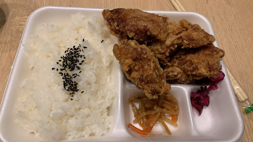 Read more特筆すべきは「待ち時間が短い」ってこと。 数名の先客が居ても次々と商品出来上がり、すぐに自分の番になります。 そして〝がぶり〟の表現がピッタリの大ぶり唐揚げ。白スーツ白髪メガネステッキおじさんが居るお店の高級感に比べ、こちらは庶民的なイメージ強いので、躊躇無く喰らい付ける感じが 食べる楽しさを倍増させてくれます。 滞在中〝醤油・塩・ヤンニョン・手羽先〟4種をいただきました。 醤油・塩は、そのままでも十分美味しいし、胡椒やマヨをチョイ足しでも邪魔しない 絶妙な下味がグット👍です。 ヤンニョンは弁当でいただき、完食の頃にはじんわり汗ばむ「甘くて辛い」大人寄りな味付け。ライスも粒立ち良く炊けています。 手羽先はゴマ風味豊かで甘い味付けで、小さなお子様も喜ぶでしょう。