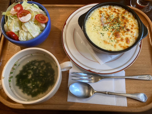 Read moreヴィレヴァンの様な雰囲気に惹かれて来店。ドリアを注文しましたが、美味しいけど…ご飯の部分が冷食っぽいなと感じました。あまりに急かすから、焼くのに時間がかかるんだなと思っていたら提供スピードが速い!し、熱くないし。お安いので許容範囲。