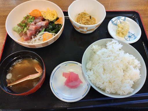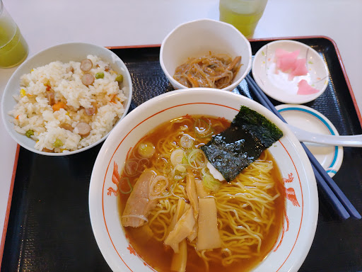 Read more盛岡中央卸売市場の中央棟(車で来た場合に直進してぶつかるあたり)の3Fにある食堂で、関係者だけでなく一般の来客者も食事可能。中央の入り口から入って右手にあるエレベーターで3Fに登れば、最低限の案内ではあるがたどり着くことが出来る。入り口は中庭から向かって左右に1ヶ所ずつあるが、向かって左側から入るほうがたぶんスムース。左側の入口から入ってすぐのところにある番号入力式の食券販売機で食券を買い、ご飯をセルフサービスで盛ってからおかずをもらう形のセルフサービス式カウンターの食堂。ラーメンなど麺類と定食類はカウンターが違うことと、丼ものと定食ではご飯を盛る器がちがうことに気をつければそれほど難しくなく購入が可能。ご飯は盛り放題で、お代わりも自由。一般来客にとって一番人気はおそらく11の番号を入力して購入する刺身定食であり、たまに昼になる前に売り切れていることもあった。また、市場関係者(自販機の食券ではなく持参の食事券で購入している)にはラーメンや肉の定食に人気が集まっているように見えた。食後はラーメンカウンターのさらに右側にある下膳口で軽く皿を洗ってから水桶に投入するタイプで、お新香などを乗せていた小さい皿と箸を入れる場所が違うことに気をつければこちらもそれほど難しくない。トレイは洗...