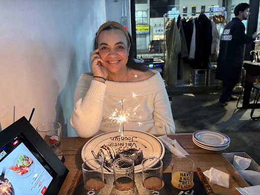 We celebrated Valentine’s Day here this year. I made reservations & asked if they could do something special for V-Day. They told me they could do a dessert with something written on the plate… but what happened was way beyond my expectations 😆… so we’re sitting there enjoying our meal when all of a sudden the place goes dark?! I thought 💭 “power outage?” But the music was still playing… then I see the waitress coming out of the kitchen with a plate with a firecracker (sparkler) on it?! 😂 Anyways it made for a very memorable Valentine’s Day. Thank you Aeron Standardの皆さん!