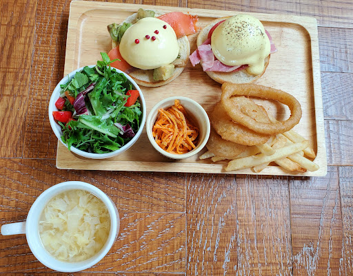 ランチプレートとエッグベネディクトプレート。 スープ付いてきます。