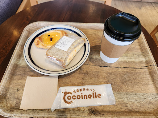 入り口横の店舗でのティータイム。並べられた焼き立てパンはお昼前で種類満載。焼き立てのピザを並べているのも、みていて楽しい。 ただ以前から思うが店舗にはいってからの動線が分かりにくい。パンを眺めて会計カウンターは二つから三つあるが、どこに出したら良いのか戸惑う。イートインだとお皿に乗せてくれるのはとても嬉しいし、注文にたいしては店員さんはとても親切で丁寧。でも、そこからイートインスペースに移動するには、またパンの陳列スペースを横切ることになる。店舗としてはもう動かし用のない設置なのでやむを得ないのだろうが、出店当初より想定していない子供連れが多かったりもするようなので、なるべくならイートインの人が通りやすい動線を確保した方がお互い安全だと思う。書店内の方のコシニール店舗よりはずっと入り口の店舗の方が雰囲気も居心地も私には良いので、そこが改善されれば...