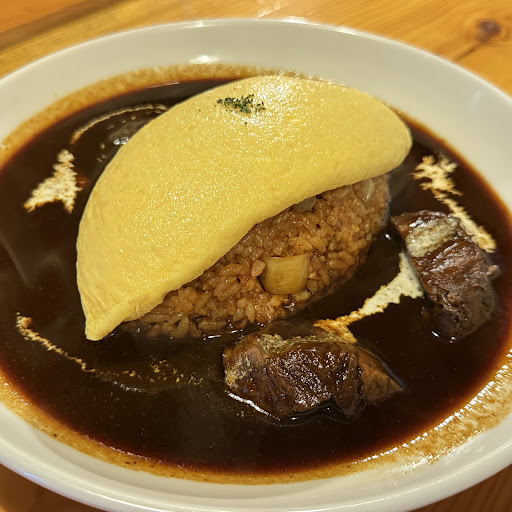 【メニュー】 「黒毛和牛門崎丑 オムライス(1,800円)」 ※単品注文のため300円引き