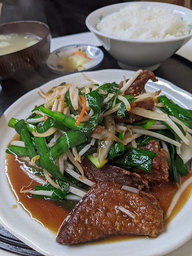 Read more一回目の訪問はレバニラと甘酢あんの天津飯が食べたくて行きました。懐かしさを覚える甘酢あんの天津飯美味しかったです。レバニラはしっかり濃いめでご飯やビールがすすむ味。近年食べた中で1番美味しいレバニラでした。 二回目は、連れがレバニラ定食、私がチャーハンセット。レバニラは二回目でも感動する美味しさ。 チャーハンセットの半ラーメンは鰹節が効いた出汁にしっとりしたチャーシューで美味しい。 チャーハンはパラパラというよりは、良く言えばしっとり、悪く言うと柔らかいご飯のべちゃっとした感じ。味はとても美味しいけれど、食感は個人的には好みではなかったです。 テイクアウトで、もつ焼きも頼みました。モツは脂少なめしっかり硬めの肉質で、キャベツたっぷりで、塩加減も絶妙で気に入りました。 常連らしきおっちゃん達がセット!って注文してるのは、おそらく日替わりのセットメニューですかね。 まだまだ気になるメニューがた...