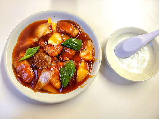 酢豚、餡掛けはケチャップ甘系。 その為か、天津麺の卵餡掛けも同じくケチャップ系甘系。 この餡掛けは好みが分かれるところ。