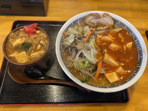 Read more初来店😊テレビによく出てくるお店。 前々から気になっていたけど、なかなか機会に恵まれずでしたが、やっと来れました。 メニュー1ページ目の看板メニュー、「盛岡タンメン味噌中辛」を頼みました。 うまい😋焦がし気味の野菜がたっぷり。麻婆豆腐の部分と半々で味変しながら食べられる。中辛でも十分辛く、汗が吹き出ます💦 チャーシューは、とても柔らかく味もしっかり。好きだ。