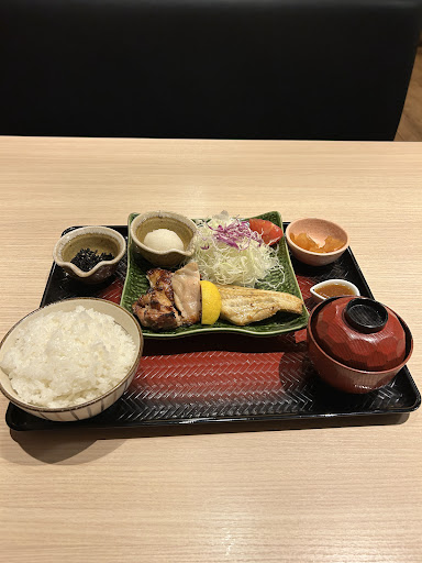 平日夜に訪問。 盛岡で大戸屋はここしかないようです。 見た目は新しく清潔感がありました。 一人での来店でしたがカウンター席が空いていましたがテーブル席を案内して頂きました。 オーダーは呼び出しボタンで注文する形式でした。過去の口コミではタッチパネルだったようですがマイナーチェンジなのでしょうか。 お肉もお魚も食べたくなり「しまほっけともろみチキンの炭火焼き定食」を注文しました。 大戸屋は何年振りかで来ましたが美味しかったです。ごましおも相変わらず美味しい!