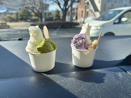 パン屋さんと手作りデザートのお店です。 みたけのエムズからすぐの所にあって道路沿いにあります。 バスクチーズケーキ・ジェラート(好きな物2種類選ぶ)コーヒー(ホットorアイス) 550円です!