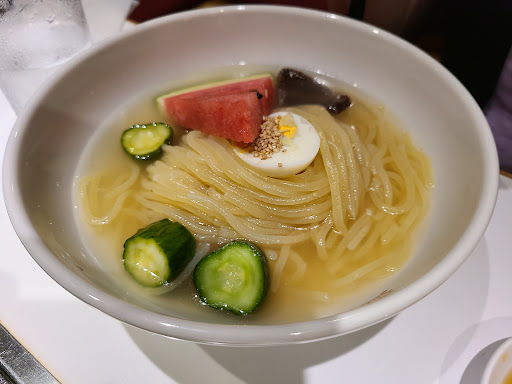 Read moreWe went to eat Morioka cold noodles, the soul food of Morioka, because it is a famous and popular local restaurant. Since it is a yakiniku restaurant, yakiniku is also served. Yakiniku can be ordered as an individual item during lunch time as well. The cold noodles are first of all impressive in appearance. The shiny cold noodle soup is crystal clear and looks delicious. The soup is mildly sour with a hint of spiciness, and the noodles are chewy, so I thought it would be the best food to refresh your palate during a chopstick rest in the middle of barbeque. It was just plain delicious, but I still felt that the cold noodles by themselves were not enough. I realized again that cold noodles are something to eat in between...