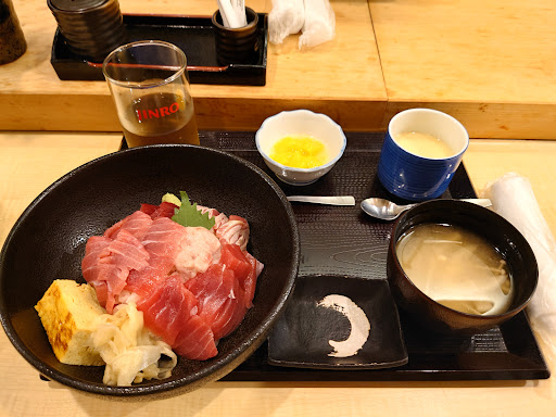 Read moreR5.7.23(Sun) 娘と2人、ランチにお邪魔しました。さほど混んでいるわけでもなく、個室のテーブル席に案内されました。2人で「本日の海鮮丼」をご飯少なめで注文。待てど暮らせど来ない・・・。それもそのはず‼️デリバリー注文対応も多く、店と同時進行的な感じでした。注文から30分過ぎに海鮮丼✨見た目もボリュームもすごいです👍ゴージャス💎✨ご飯少なめお願いしたのに、普通の茶碗2杯より多い酢飯。他の方のクチコミにあったようなご飯ではなく、美味しかった😋ネタもマグロ、ハマチ、あともう1種類、だし巻き玉子、ガリが乗ってます🐡🐟🥚みそ汁、具なし茶碗蒸し(←褒めてます✨)、水まんじゅうが付いて¥1,000Σ(゚д゚;)‼️ 土日のランチもありがたい🙏けどこの値段‼️値段以上の価値あります👏👏👏ぜひまた行きたいお店です👍 ✳️お茶(温・冷)はセルフ、注文は自分で声かけです。待ち時間に耐えられない人向きではないですね。美味しいのをたくさん食べたい人に...