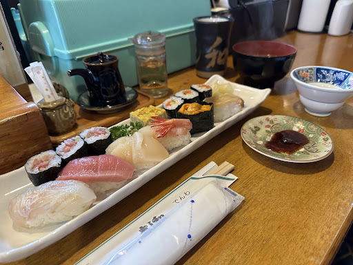 電話にて予約しました。 カウンターは満席のようで、小上がりに2名にて着席。 カウンター席には常連さんでいっぱいで賑やかでした。 三陸寿司のセットメニュー(3,000円)を注文。 とても新鮮で大変美味でした。並でも1000円ですし、ランチもお得そうなので興味をそそりました。 話は戻り、追加で巻き物も数点注文。わさび巻きが絶品。やはり本わさびは美味しいですね。 800円の太巻きも注文。意外に量が多く、食べきれそうにないなぁと思っていると、女将さんから「持ち帰りますか?」の一声。助かりました。 優しい気遣いに感謝でした。