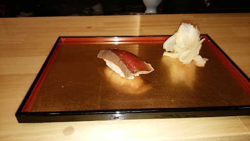 最初に私は特に苦手なし、連れは本鮪とかの脂多いものと光物は避けてとの注文だったのですが、私は漬けの時に連れはえんがわ?この店ではえんがわは脂少ないネタの扱いらしい。 本当は私も光物は苦手ではあるけど、初訪問でもあるの、でまぁこはだは出されると想定していたしいただいてみる。パサ味はないもののかなりお酢感強目で、ちょっと無理なやつでした。