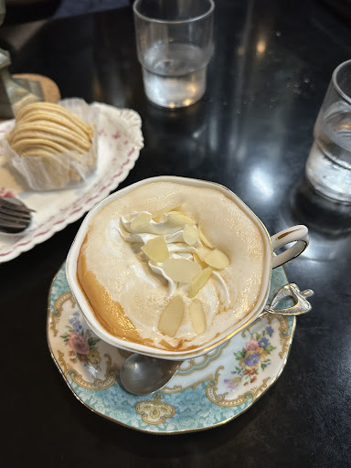 古い純喫茶店を、昭和の時代にタイムスリップしたとか、時間が止まったようなとの表現がありますが、このお店は英国風のレトロ空間といった印象。 コーヒーというよりは紅茶の種類の多いお店だからイギリス贔屓と考えるのは安易ですが、アンティーク調の調度品や、抑えた色調で落ち着いた内装の店内は、僅かな異国感を感じさせてくれて、店内を見回すだけでワクワクします。 二階のそれぞれの席は、微妙な段差で高低差がつけられているので、他の客を意識させない造りも、快適な空間を提供するお店の拘りなのかな。 何にしても、細部まで店主の配慮が行き届いた空間なので、そこで過ごす、ゆったりとした時間は贅沢なのは間違いないです。 出された紅茶やケーキも、値段はお手軽ですが、少しも手を抜いたようなものではなく、美味しくいただけます。 他のメニューも食べればよかったです。 少し休もうと入ったのですが、居心地が良く、ついつい長居しましたが、それも自然に許容してくれるような空間で、質の良い特別感のある時間を過ごさせて貰えて大満足です。 お店のこだわりがギュッと詰まったこの純喫茶は、長く続いて欲しい、また行きたいと思...
