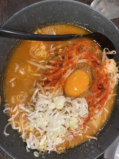 店内にスムーズに入ると中には2,3人。 すぐにオーダーが通り、前回の経験から、看板メニューのキムチ納豆ではなく、納豆をチョイス。 独特の匂いが人を選ぶが、たまらないコクのある味噌ラーメン。 もやし等の野菜類も、二郎系ばかりだったため、炒めてある歯ごたえを堪能。 そして自家農場で育てた小麦をオリジナル小麦粉にして作る、加水率40%の麺がとても歯ごたえがいい。 味覚を失ったとしても、噛むだけで美味しいとわかる麺。