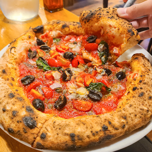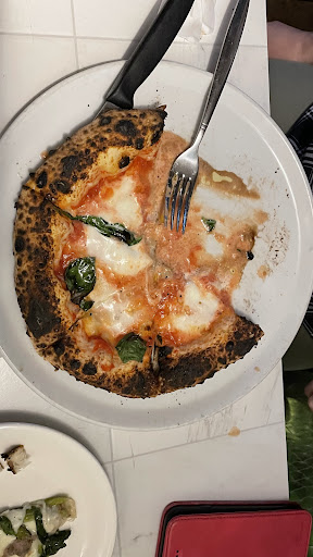 うーん、2019年の真のナポリピッツァ協会とナポリピッツァ職人協会にて、2位と1位の実力とは思えない。もちろん大会で出したピッツァと今日食べたピッツァは、同じではないとは思う。違う人が焼いたのかな? 夕食に、水牛モッツァレッラのマルゲリータエクストラと、人気と特記されたサルシッチ(自家製ミンチソーセージと季節の青菜)の2種類を注文しました。少し待ったかなと言うくらいの20-30分くらいでテーブルに運ばれてきました。 第一印象は、うわ真っ黒!表も裏も真っ黒(写真)。高温短時間で焼き上げるというナポリピッツァにしても、ここのピザは案の定炭の味。適切な焦げは必要だが、こんなに焦げてるのに、なんと耳の中央は十分に火が通っていない(写真)。もちもちナポリと言えども、お客さんが多く、高温、短時間が過ぎた? マルゲリータの水牛モッツァレッラは、もうちょっと牛乳の残り味を期待していたが、それは無かった。普通チーズとの差は少しはある。サルシッチのミンチソーセージと青菜は、全くピザには合わないと感じた。特に青菜は、どんな野菜か分からないが、水っぽくピザには合わない。だいたいどこの店も独自のピザをメニューに入れているが、残念ながらこれは最悪。試食したのかな?人気とあるんだけど。。。 生地は上で書いたように、生地のみの味も悪く、チーズや具材を引き立てるわけでもない。特に焦げが邪魔してる。 釜は、詳細を見ることはできなかったが、立派そうで、大きな排気管が客室を横切っています。 書き込みの内容や、大会での成績でとても期待していたが、誠に残念。生地、具材、焼き具合について、私の評価は低いが、個人の感想なのでご容赦を!これは大昔ナポリに行って食べた味を忘れてしまったの...