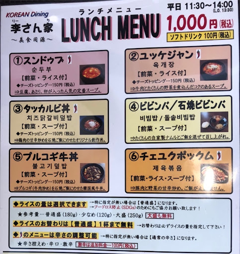 Read more①スンドゥブ(ランチ)@1,000 ★★★★☆ 定番のアサリと豆腐のスープ。アサリ出汁しっかり感じます。今回はチーズトッピング+150で合計1,150の定食にしました。 チーズのこくが足され美味しさup!! ただアサリがチーズと絡むので食べずらいのが欠点です。定番のシンプル美味しいですが、数種のランチの中では原価が安いかな。