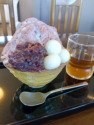Read more抹茶パフェ目的で訪問しました。 残念ながら抹茶関係のスイーツは夏期お休み中とのことでした。 代わりに夏期限定のふわふわ氷いちごを注文しました。 凍らせたいちご牛乳をふわふわのかき氷にして、冷凍いちごをトッピングして練乳をかけた感じのふわふわないちごのかき氷でした。 追い練乳も別容器にあって、最後まで美味しいかき氷を楽しめました。 ちなみに抹茶パフェは10月頃に再開するようです。
