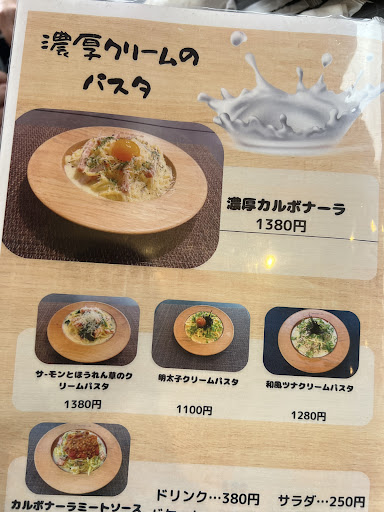 はじめての来店。テラス席にて。 味はとっても美味しかった!また行きたいと思う味。クリーム系が抜群に美味しい。味付けはしっかりめ。 さすが生パスタ、もっちもちでした。 ネットに掲載されてる値段と実際の値段が違うものが多いので統一してほしいです。