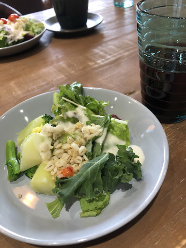 サラダバーは、レタスやケール、マカロニ、ブロッコリー、ミニトマト等。 ランチタイム内に行ったのに、もう補充されてなく、スカスカで残念…。残り物から選んで取るみたいな気持ちに。