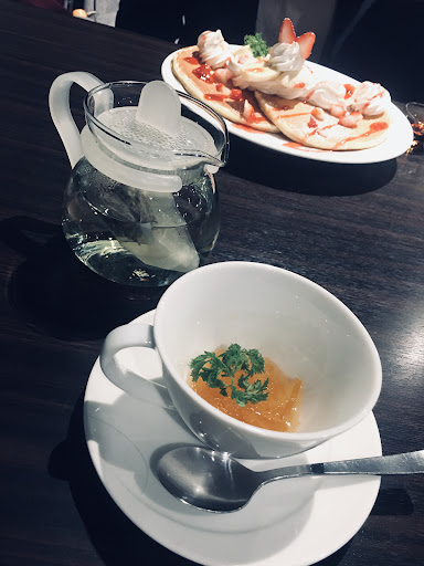 Read moreモーニングで利用しました☺︎ びっくりしたのが価格がとても安いです。ドリンクが300円〜で10時から11時の間であればサラダ、茹で卵、トーストのモーニングを無料でつけていただけます。ただ向こうから提示していただけるわけではないのでこちらからモーニングをつけてくださいと頼まなければなりません。 他の時間にもいろいろなタイムサービスをやっているようなのでどの時間帯でもお得に食事ができると思います。 メニューが税込み価格で、端数が出ないような価格なので分かりやすく、ランチも800円くらいで美味しそうなのでまた利用したいなと思いました。 はちみつゆずれもんティーを頼みましたがお湯が少し冷めていて暖かい飲み物を期待していたのでそこだけが残念でした。カップの中にジャム?のように入っている中に注いで飲むスタイルで見た目もかわいかったです✴︎モーニングではトーストがとても分厚く、サラダはいろいろな野菜が使われておりこれを無料で提供できるのはすごいなぁと。 友人のパンケーキも家庭的なホットケーキの上に写真通りたくさん苺とバナナ、ホイップがのっており満足感が凄そうでした。 駅近くでゆったりできるので時間を潰したい時などにはぜひ行って欲しいです。 ありがとうございました☺︎