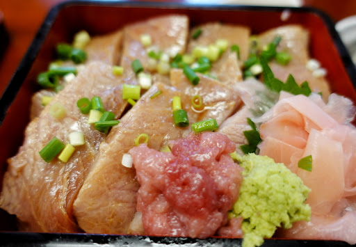 Read more今日は、お墓参りの帰りに、昔法事・法要でよく使っていたこのお店にお邪魔しました。お店の人に勧められた1日限定◯食という炙り大トロ丼と、天ざるうどんを相方とシェアして頂きました。炙り大トロは、そこそこの厚みがあり脂乗りもよく、かなり美味でした。弾力がある割には口溶けがよく、旨味が口いっぱいに広がります。それにしても、期間限定とか1日限定何食には弱いですね。それでも、今回はコスパも良く大正解でした。小鉢のひじきの和え物もまずまずでした。天ざるうどんは、つけ汁が美味かったで...