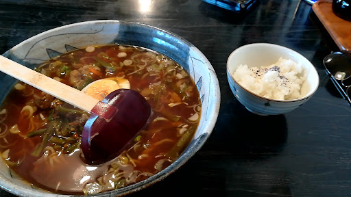 学生時代によく利用していたお店です。外から見たらなに屋かわからない佇まい。らーめんの看板と喫茶の文字。中入っても同じく、BGMはクラシックが流れながら、メニューはコーヒーなどのドリンク以外にらーめん、餃子、定食などなど。場所も大きな道を入った住宅街の中に突如現れる。学生時代も何となくの記憶でたどり着いていました。もう何十年も根付いているお店で客層もファミリー層が多く、駐車場の埋まりの割りに中が混んでいたりするので近くの人達が歩きで来ることが多そう。いつも注文するのは孫悟空らーめん。豚肉とニンニクの芽が入った辛いらーめん。小ライスが無料でついてきます。見た目の割りにとても辛く、しかし箸が進む味です。餃子は余っても持ち帰りも可能です。できるだけ長...