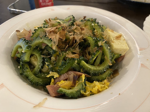 We had the grilled shrimp, goya champuru and wings, they were delicious!