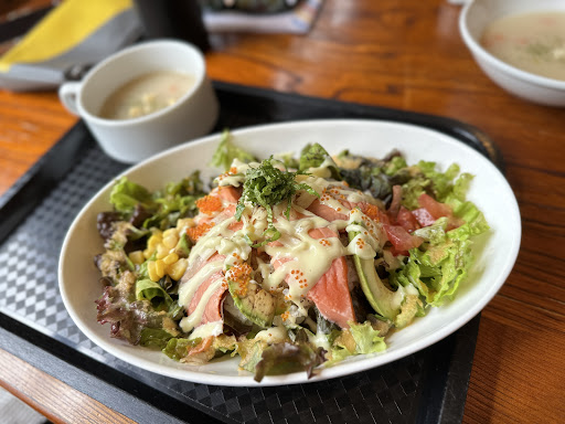 Read more🥗 Salmon Avocado Salad with Miso Mayo This was a refreshing surprise. The salad featured fresh lettuce, juicy tomatoes, creamy avocado slices, and vibrant chunks of salmon sashimi, all drizzled with a rich miso mayo dressing and topped with tobiko (fish roe) for a pop of umami. Corn and nori strips added extra texture and flavor. It came with a warm cup of creamy corn soup—simple but satisfying.