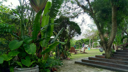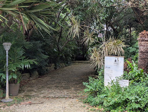 On a hot summer day you can have lunch or just a coffee here, after you've been to the nearby beach. The staff speaks Japanese only. There's a nice lunch menu with daily changing specials. The interior is wooden and cozy, the outside very green and like a sunny backyard. Kids can play on the slide or just run around, it's so wide. Food is served very detailed and with love.