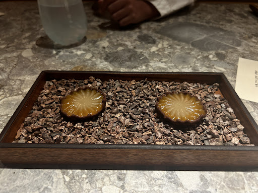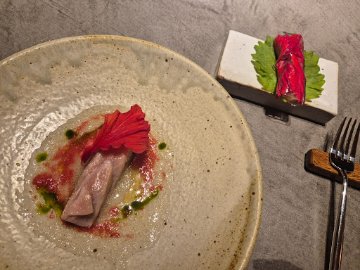 An absolute must if you're in Okinawa and love beautifully presented, delicious food. This is omakase-style, so you donโt choose the dishes โ which I love. The chef trained in Japan and Spain, and the menu is a perfect fusion of Japanese and European flavors using local, seasonal ingredients.